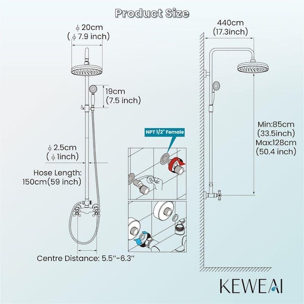 Exposed Shower Faucet Set 8 in. Wall Mount Rainfall Shower Head Handheld Spray Cross Double Handle Oil Rubbed Bronze
