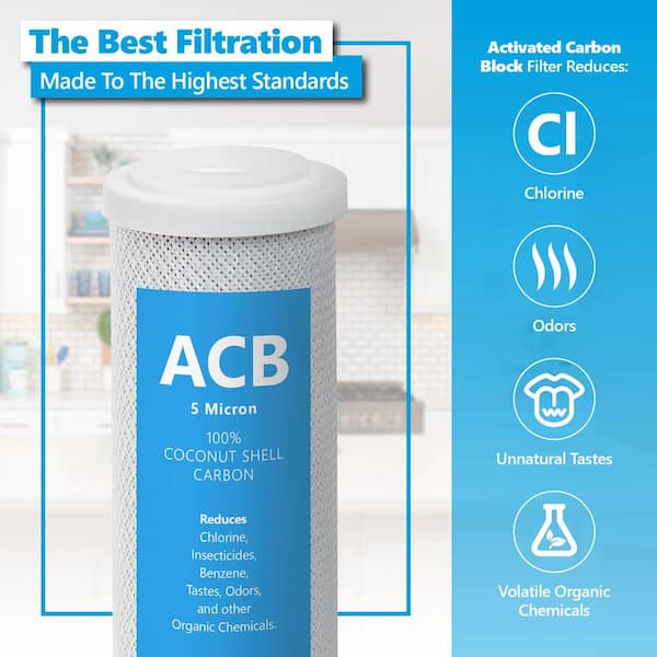 Activated Carbon Block Water Filter Replacement-5 Micron-Under Sink Reverse Osmosis System (4-Pack)