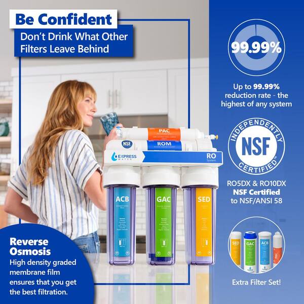 Reverse Osmosis 5 Stage Water Filtration System - with Faucet, Tank, and 4 Replacement Filters - 100 GPD