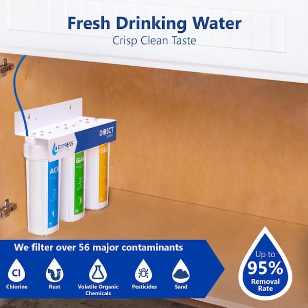 Under Sink 3 Stage Direct Water Filtration System in Brushed Nickel Faucet - SED, ACB GAC Carbon Filters