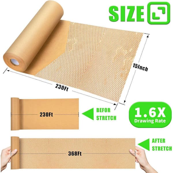Extra Large 15x230' Honeycomb Packing Paper Roll Eco-Friendly Protective Bubble Wrap Alternative with 36 Fragile Labels