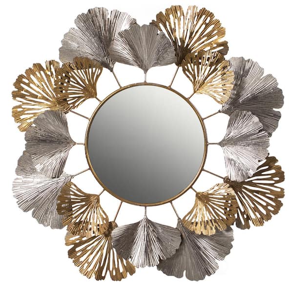 33 in. H x 33 in. W Accent Wall Mounted Mirror with Gold and Silver with Decorative Modern Ginkgo Leaf Frame