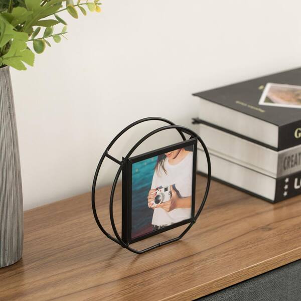 4 in. x 6 in. Black Modern Circle Shape Metal Decor Photo Picture Frame for Tabletop Display