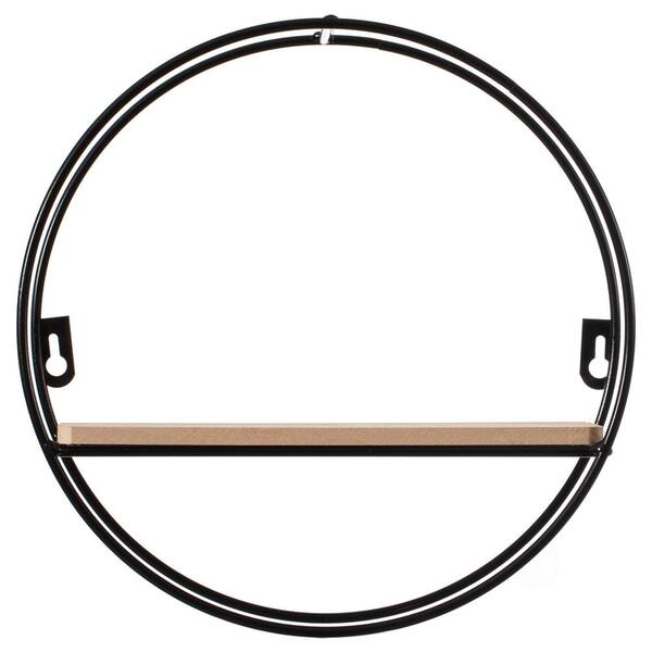 Black Decorative Round Accent Floating Shelf Circle Decor Display Wall Mounted Rack with Metal Frame and Shelf