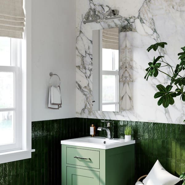 12 in. W x 30 in. H Rectangular Silver Aluminum Recessed/Surface Mount Medicine Cabinet with Mirror, Left Hinge
