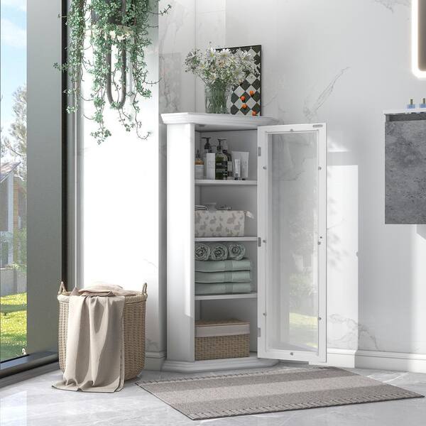 16.1 in. W x 16.1 in. D x 42.4 in. H Freestanding White Linen Cabinet with Glass Door