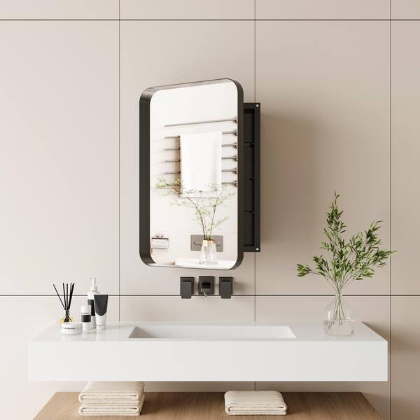16 in. W x 24 in. H Black Rectangular Metal Recessed or Surface Mount Medicine Cabinet with Mirror