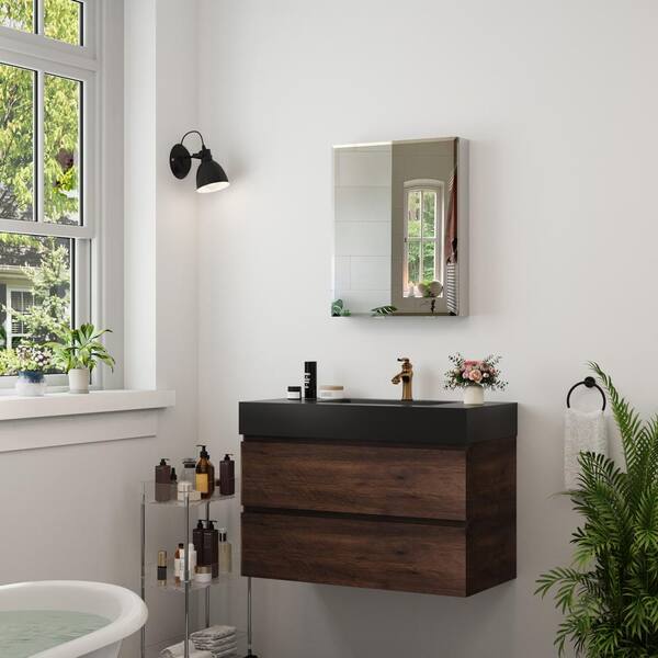 20 in. W x 26 in. H Black Rectangular Aluminum Surface/Recessed Medicine Cabinet with Mirror, Adjustable Shelves
