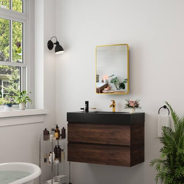 20 in. W x 28 in. H Gold Rectangular Metal Framed Recessed/Surface Mount Medicine Cabinet with Mirror