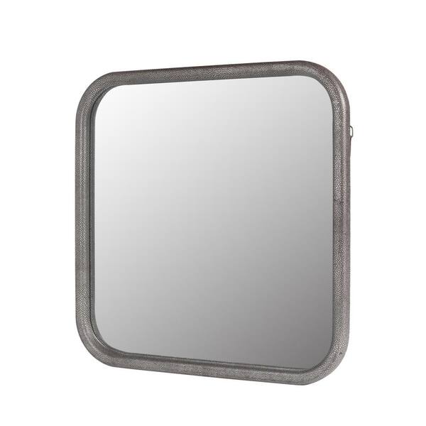23.6 in. W x 23.6 in. H Small Square PU Covered MDF Framed Wall Bathroom Vanity Mirror in Pewter Brush Nickel