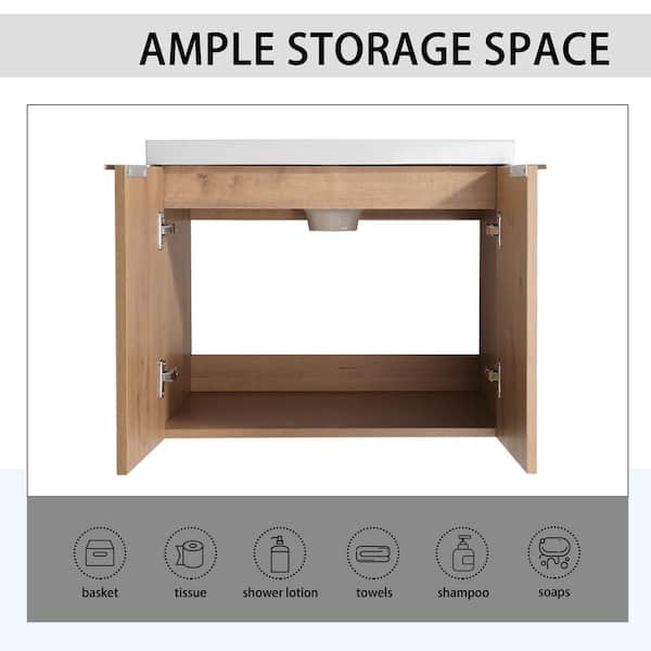 24 in. W x 18.1 in. D x 19.3 in. H Single Sink Floating Bath Vanity in Imitative Oak with White Resin Top