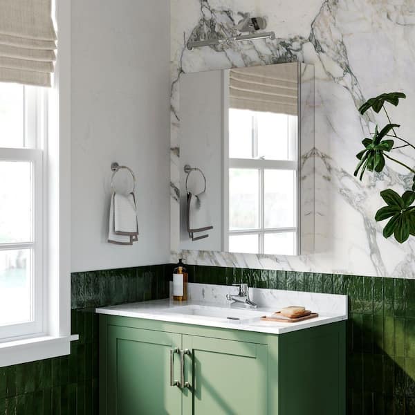 24 in. W x 30 in. H Rectangular Silver Aluminum Recessed/Surface Mount Medicine Cabinet with Mirror, Right Hinge