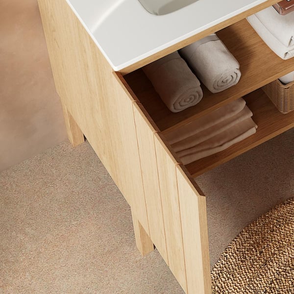 30 in. Single Sink Freestanding Natural Wood Bath Vanity with White Ceramic Top, Double Doors