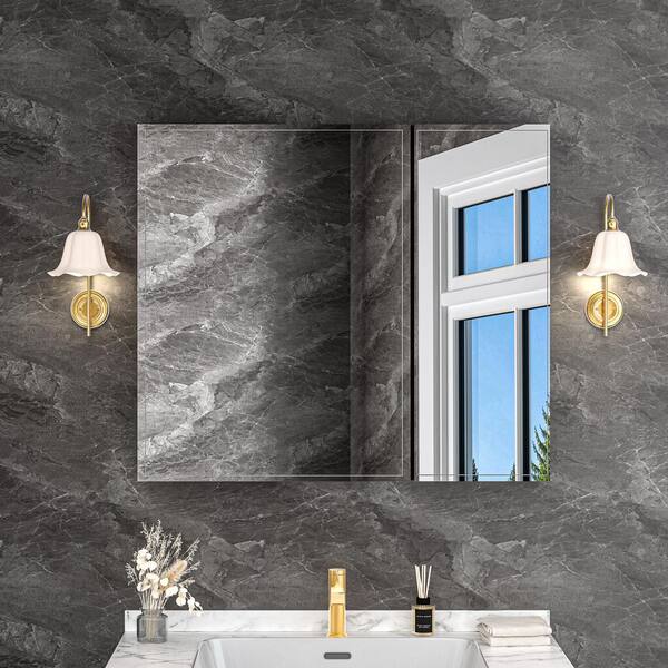 30 in. W x 26 in. H Rectangular Black Aluminum Alloy Recessed/Surface Mount Medicine Cabinet with Mirror
