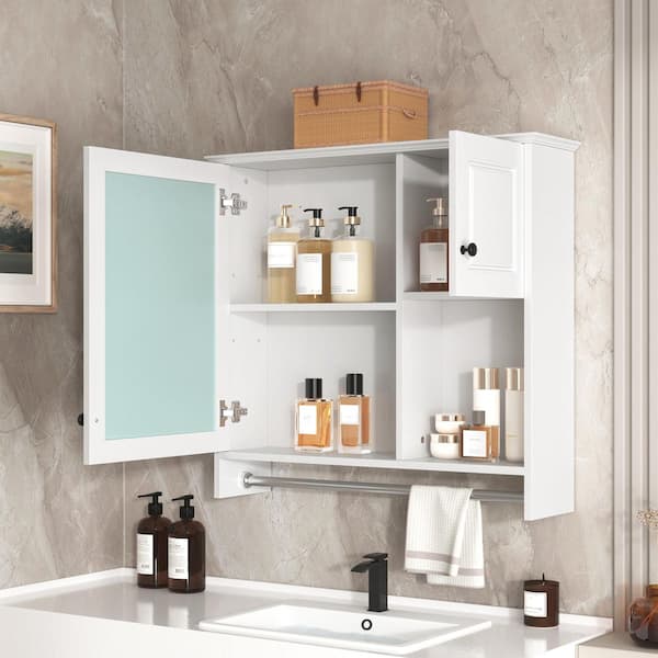 30 in. W x 28 in. H White Rectangular Surface Mount Medicine Cabinet with Mirror