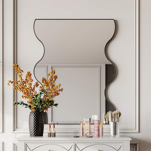 30 in. W x 35 in. H Wavy Novelty/Specialty Framed Horizontal/Vertical Wall Bathroom Vanity Mirror in Black