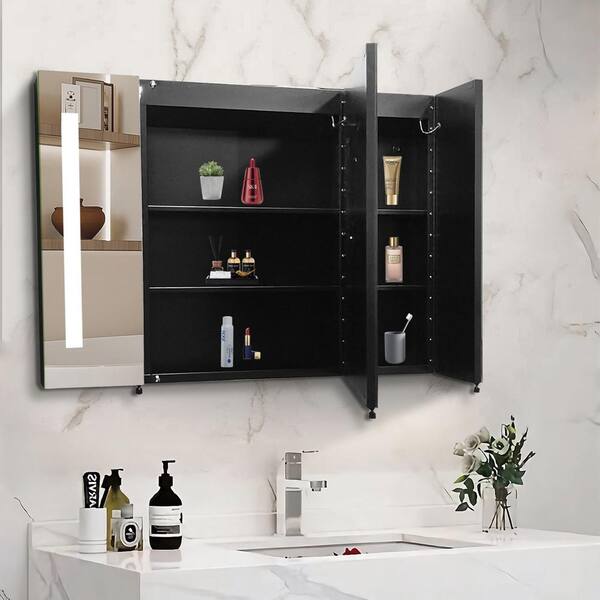 36 in. W x 26 in. H Rectangular Aluminum LED Light Anti-Fog Dimmable Medicine Cabinet with Mirror in Black
