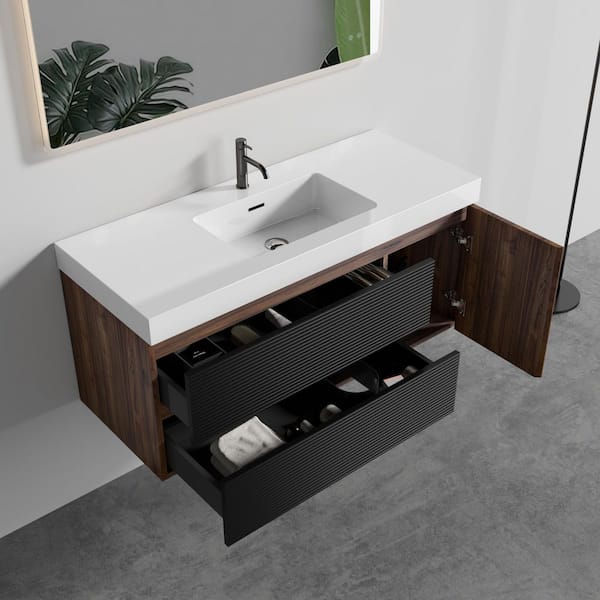 48 in. Fully Assembled Single Sink Bath Vanity in Walnut with White Solid Surface Top