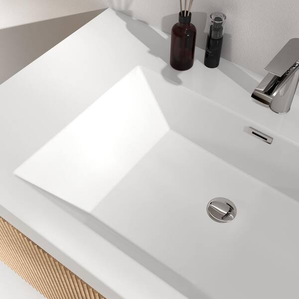 60 in. W Double Sink Natural Oak Floating Bath Vanity with White Solid Surface Top