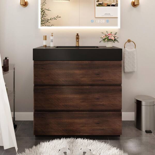 48 in. W x 18.3 in. D x 34.6 in. H Double Sink Freestanding Bath Vanity in Imitative Oak with White Cultured Marble Top