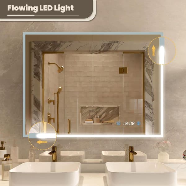 48 in. W x 36 in. H Black Rectangular Aluminum Dimmable Flowing LED Light Surface Mount Medicine Cabinet with Mirror