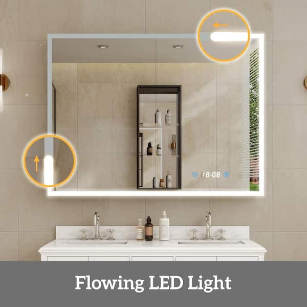 48 in. W x 36 in. H Black Rectangular Dimmable Flowing LED Light Aluminum Surface Mount Medicine Cabinet with Mirror