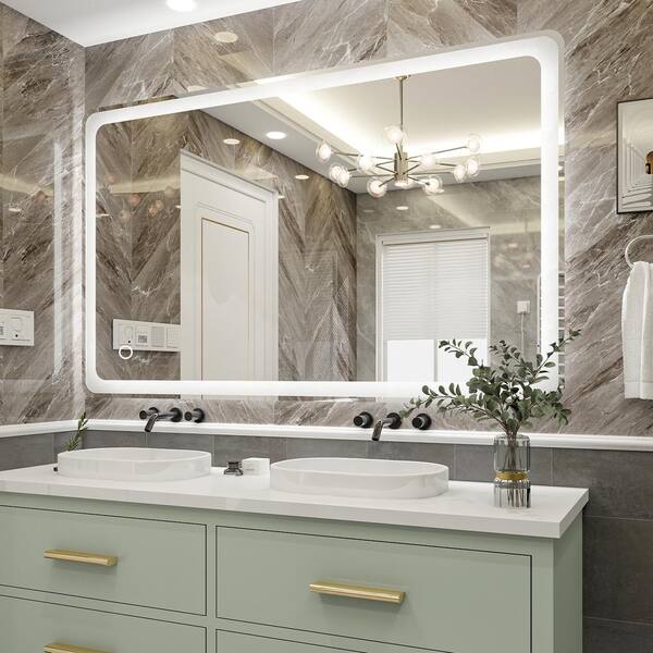52 in. W x 32 in. H Rectangular Frameless Dimmable LED Light Wall Vertical/Horizontal Bathroom Vanity Mirror in Silver
