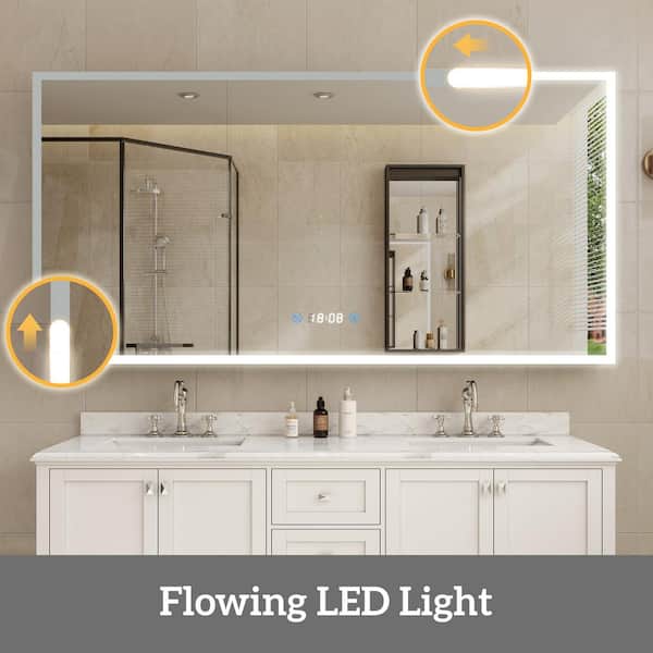 60 in. W x 36 in. H Large Black Rectangular Flowing LED Light Aluminum Surface Mount Medicine Cabinet with Mirror