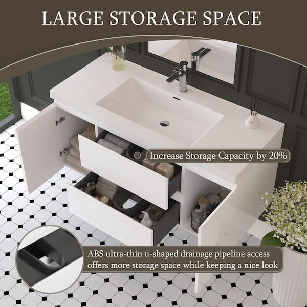 Luxe Aura 48 in. W x 20 in. D x 22.5 in. H Single Sink Floating Bath Vanity in White with White Resin Top