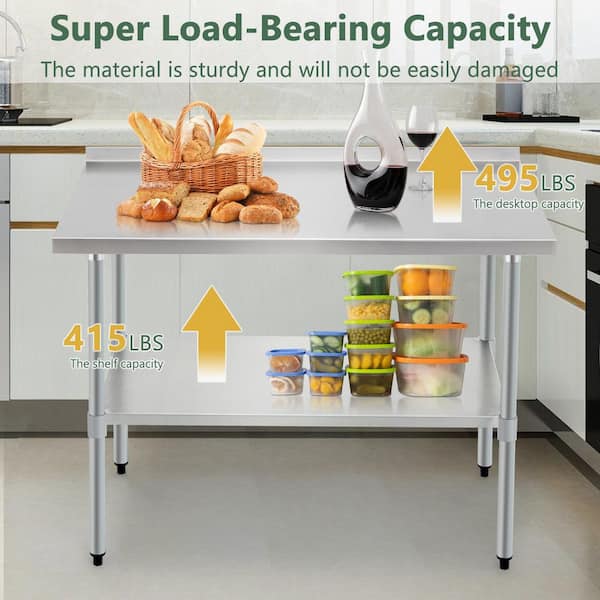 Stainless Steel 48 in. Kitchen Prep Table with Adjustable Undershelf and Backsplash