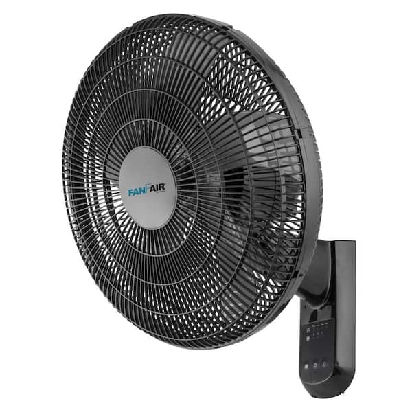 16 in. 3 Fan Speeds Wall Fan with Remote Control in Black