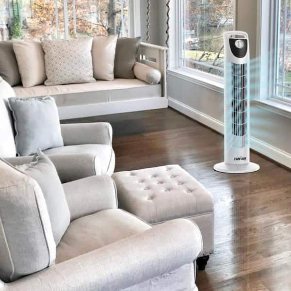 30 in. 3 Fan Speeds Tower Fan in White with Oscillation Function
