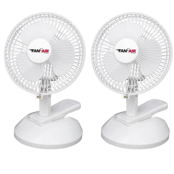6 in. 2 Speeds Table and Clip Personal Fan in White (2-Pack)