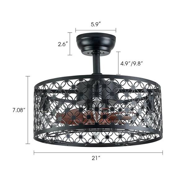 21 in. Indoor Black Modern Ceiling Fan Light Kit, Drum Cage Ceiling Fan with Remote and Light