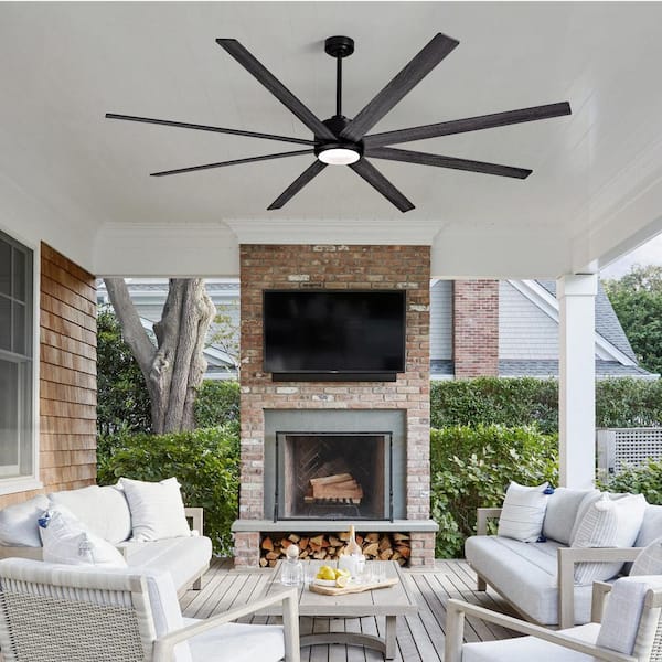 84 in. Indoor/Covered Outdoor Black Industrial Ceiling Fans with Lights and Remote for Large Space