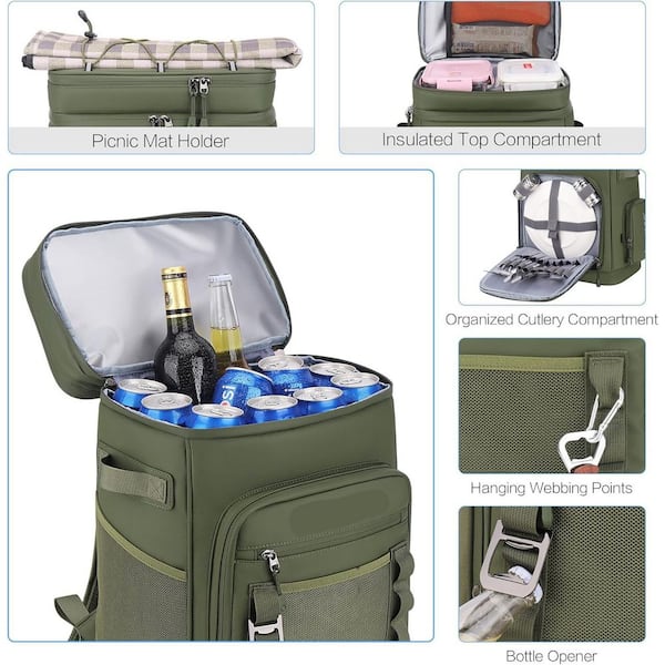 34 qt. Waterproof Insulated Cooler Backpack, Leak Proof Cooler Backpack, 48Cans(Green)