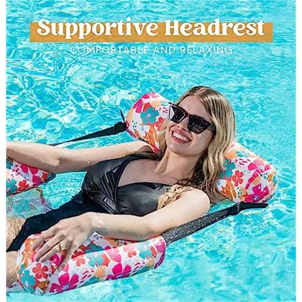 Inflatable pink Pool Tropical Flower Pattern Water Floating Chair ( 2-Pack )