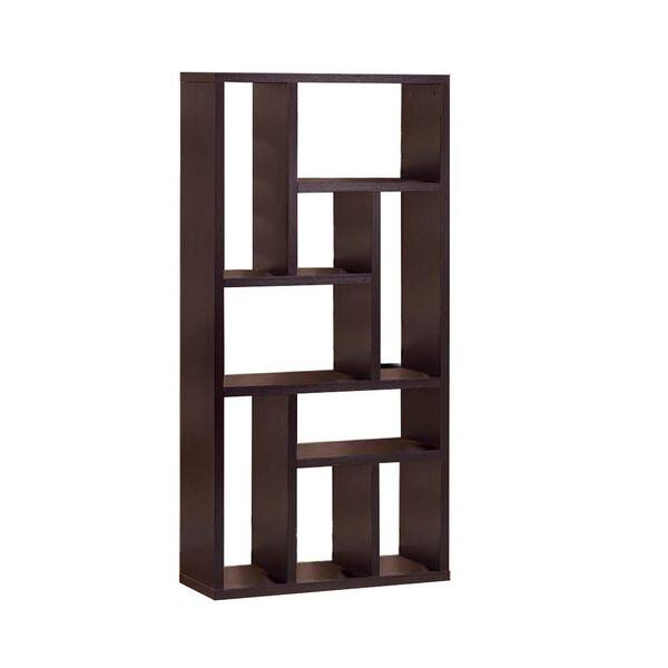 70 in. H Red Cocoa Finish Geometric Bookcase with 9-Open Shelves