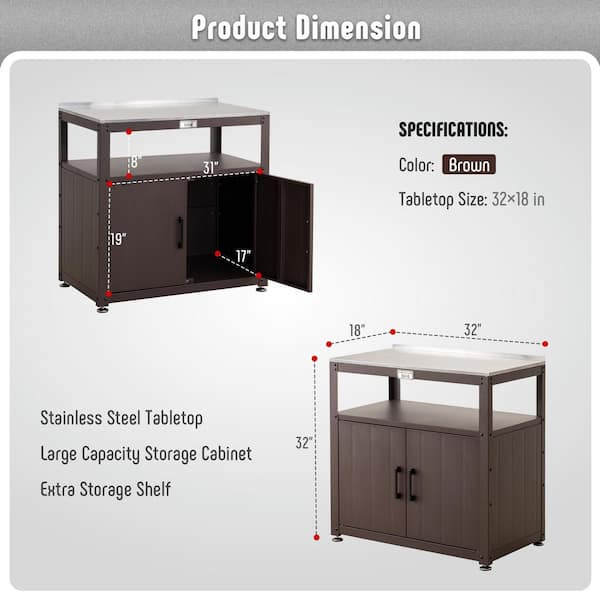 32 in. L x 18 in. W x 32 in. H Potting Bench with Storage Cabinet