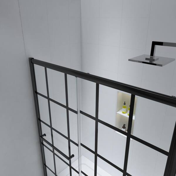 46 in.-51 in. W x 72 in. H Single Sliding Framed Shower Door in Black Finish with 1/4 in. Clear and Tempered Glass