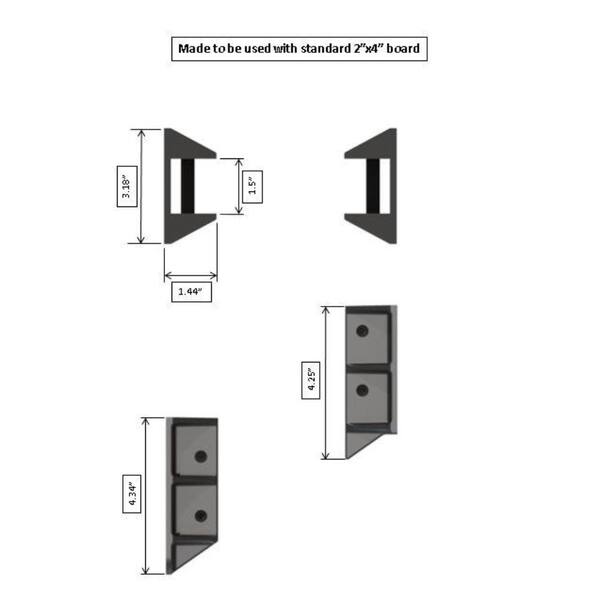 2 in. x 4 in. Stair Railing Hangers Fits Standard Railings Reinforced Black Polypropylene 4-Sets (8-Pieces)