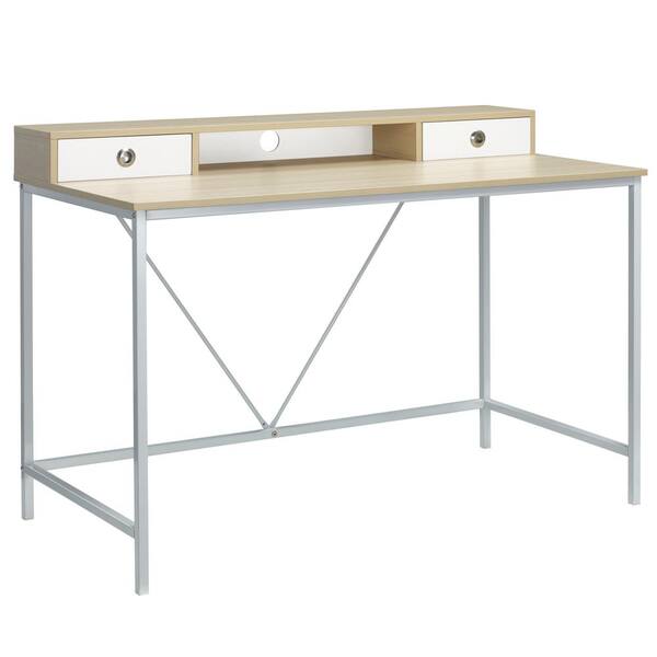 48 in. Rectangular Beige 2 Drawer Writing Desk with Hutch