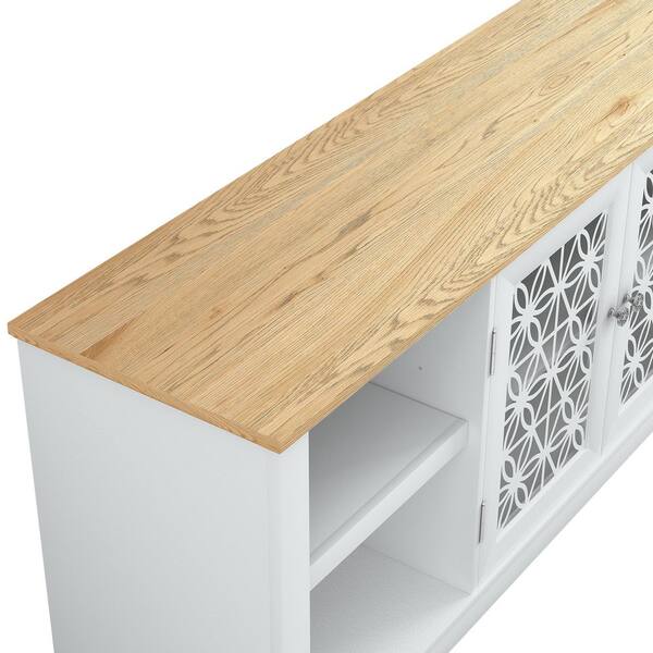 70 in. Wooden White TV Stand with 2 Storage Shelves Fits TV's Up To 78 in. with Cable Management