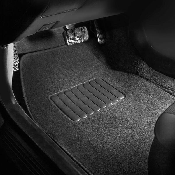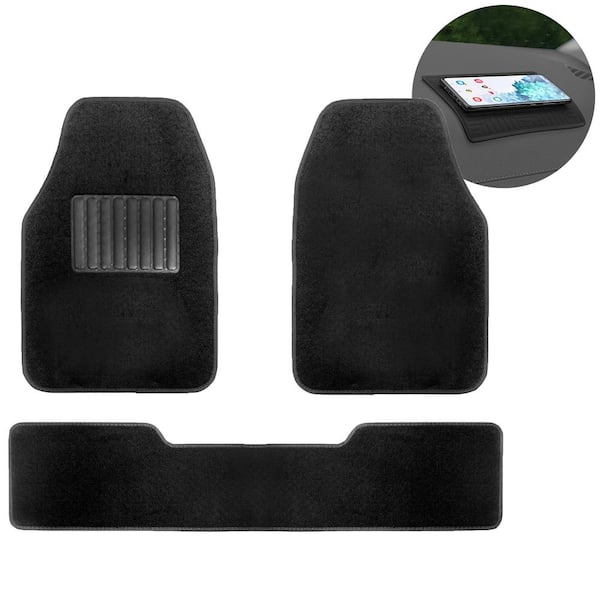 Black 3-Piece Universal Premium Soft Carpet Floor Mats with Striped Heel Pad Floor Liners - Full Set