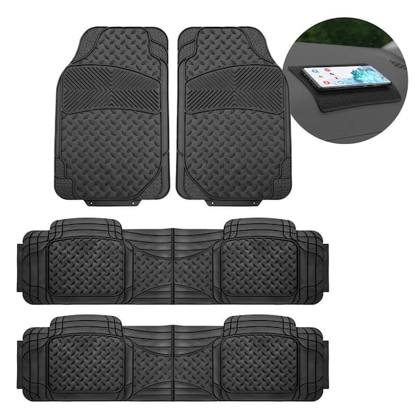 Black 3-Row Heavy-Duty Liners Vinyl Trimmable Car Floor Mats - Universal Fit for Cars, SUVs, Vans and Trucks - Full Set