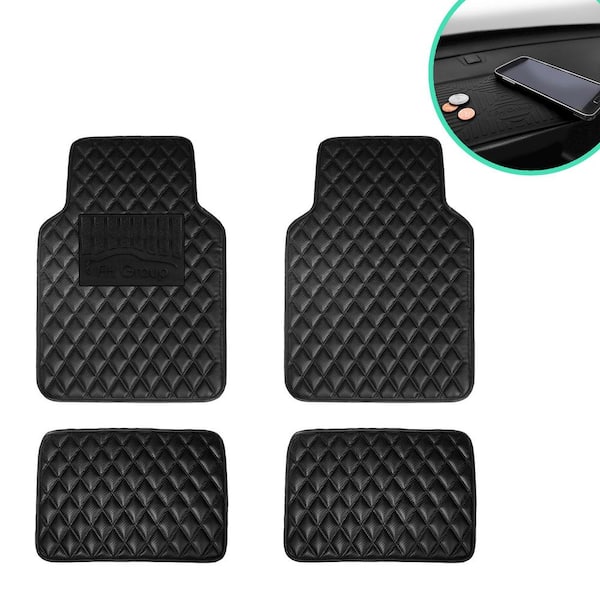 Black 4-Piece Luxury Universal Liners Heavy Duty Faux Leather Car Floor Mats Diamond Design