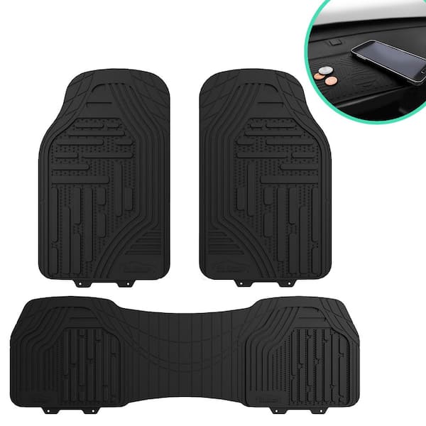 Black Classic Rubber Liners Trimmable Car Floor Mats - Universal Fit for Cars, SUVs, Vans and Trucks - Full Set