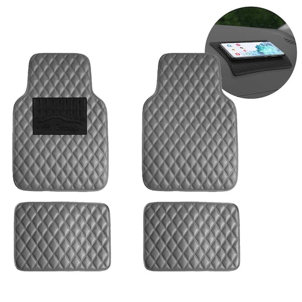 Gray 4-Piece Luxury Universal Liners Heavy Duty Faux Leather Car Floor Mats Diamond Design