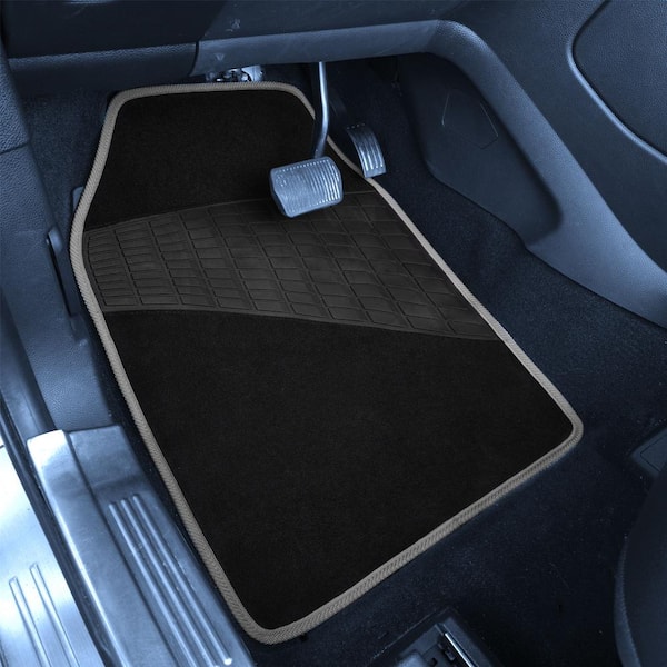 Gray Color-Trimmed Liners Non-Slip Car Floor Mats with Rubber Heel Pad - Full Set
