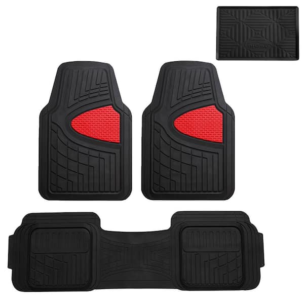 Red Trimmable Liners Heavy Duty Tall Channel Floor Mats - Universal Fit for Cars, SUVs, Vans and Trucks - Full Set